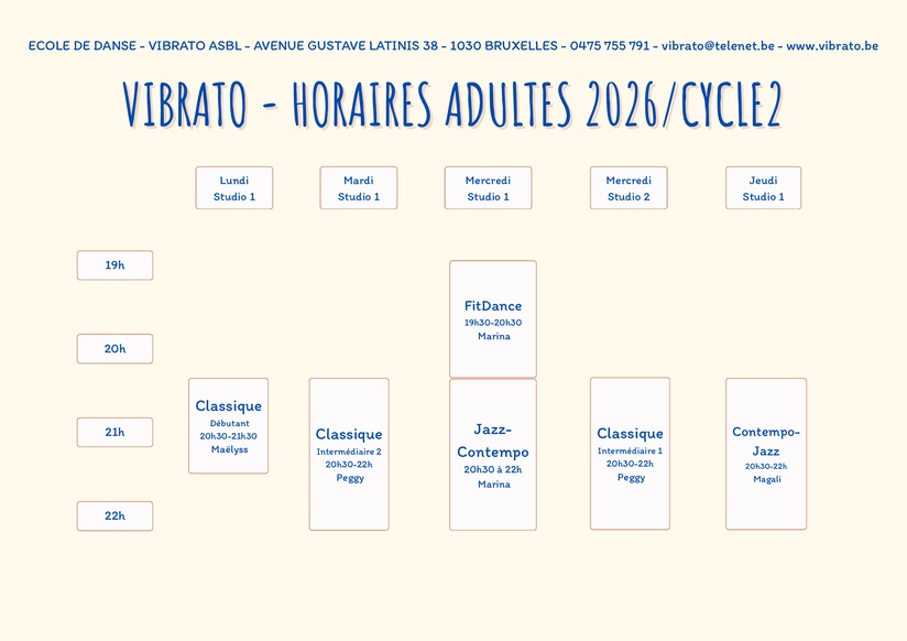HORAIRES DES COURS ENFANTS ET ADOS - SEMAINE