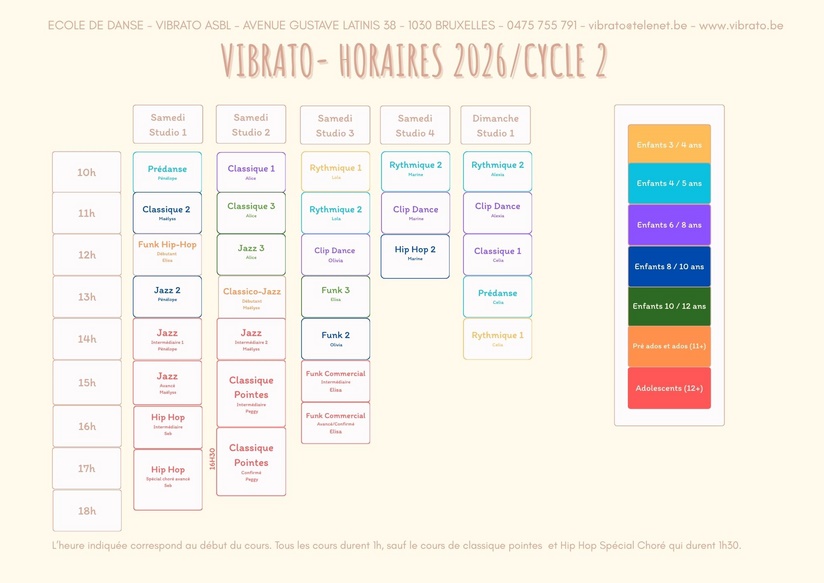 HORAIRES DES COURS ENFANTS ET ADOS - WEEKEND